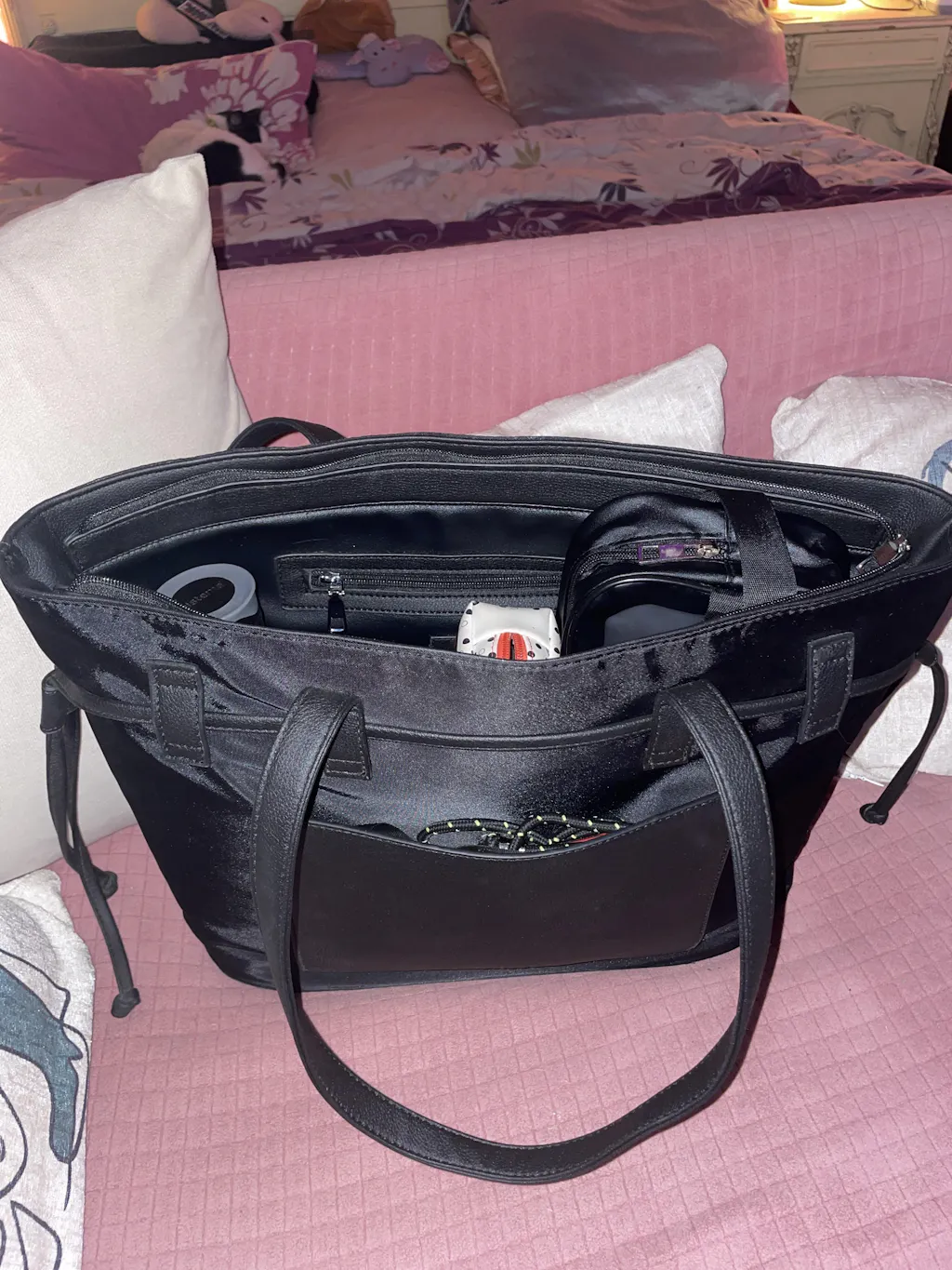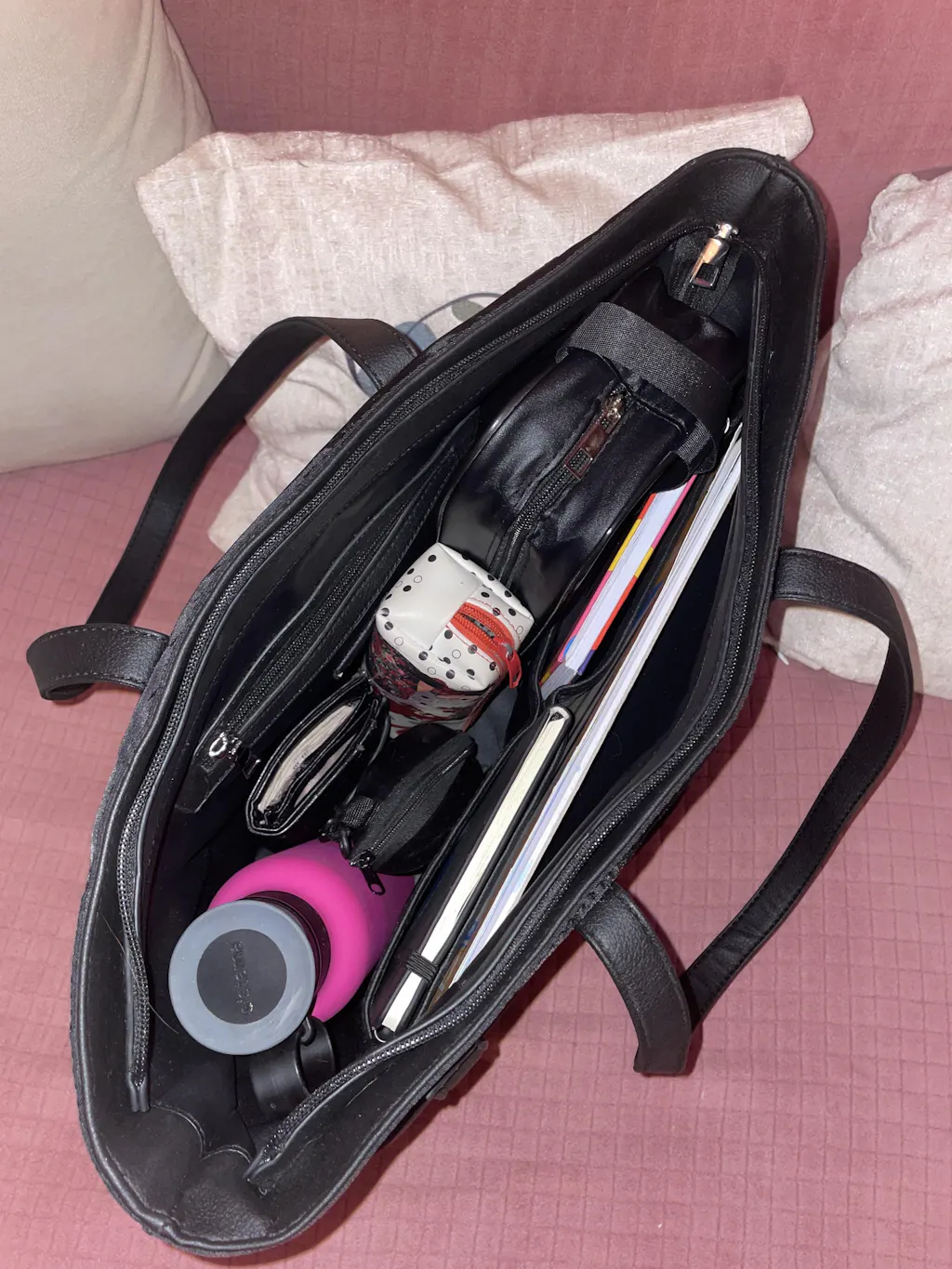 It is literally perfect. I wanted a work bag that was both chic and light but big enough to take all of my things. It takes my sketchbook two notebooks my pencil case my lunchbox wallet, keys, sunglasses case and my bottle, and still zips , plus unlike a lot of other products the handle for the bag is actually quite comfortable plus it being waterproof rules out any chances of it getting dirty.