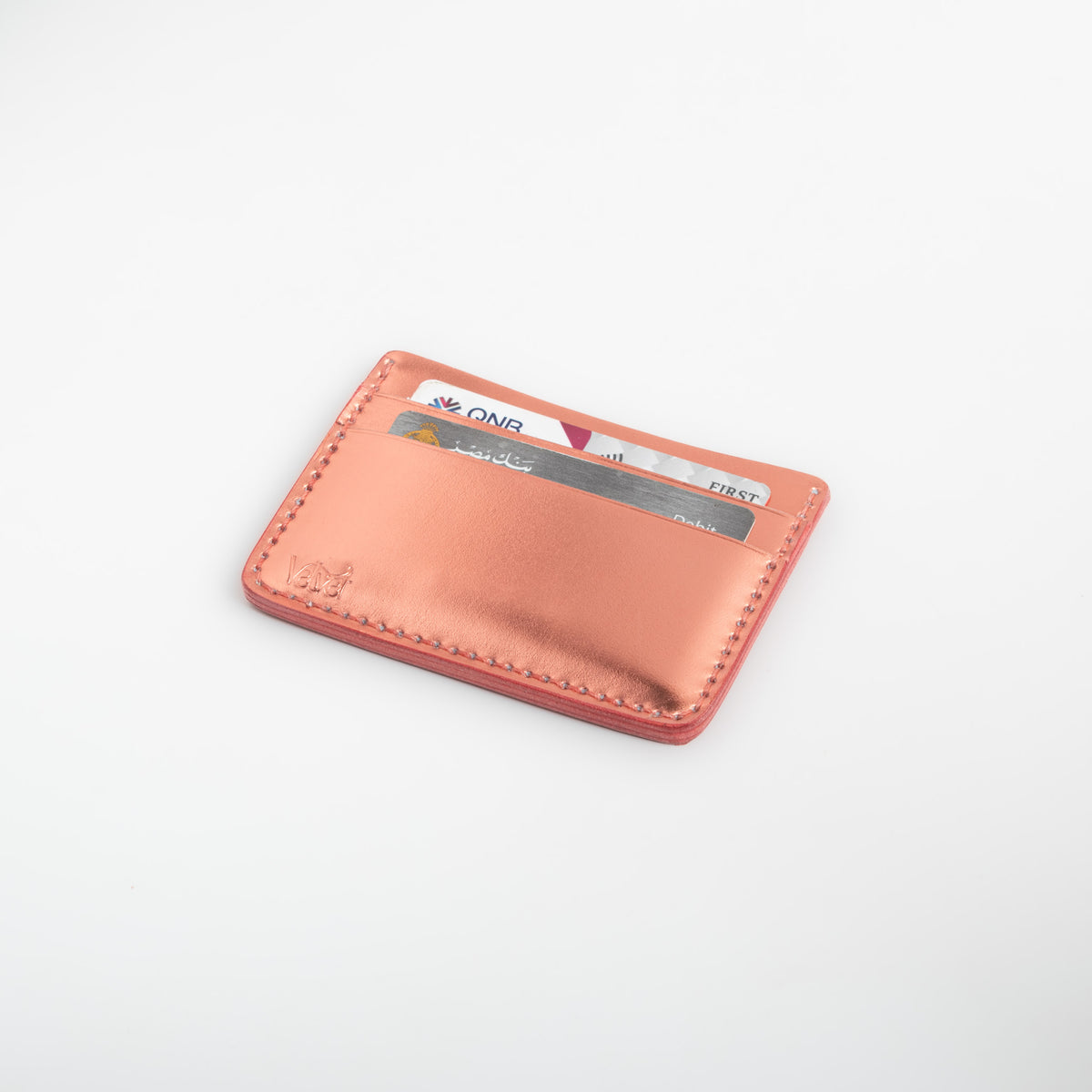 Bold & Sleek – The Velvet Cardholder in Metallic Rose gold is your go-to for effortless elegance. Compact, stylish, and made to last!