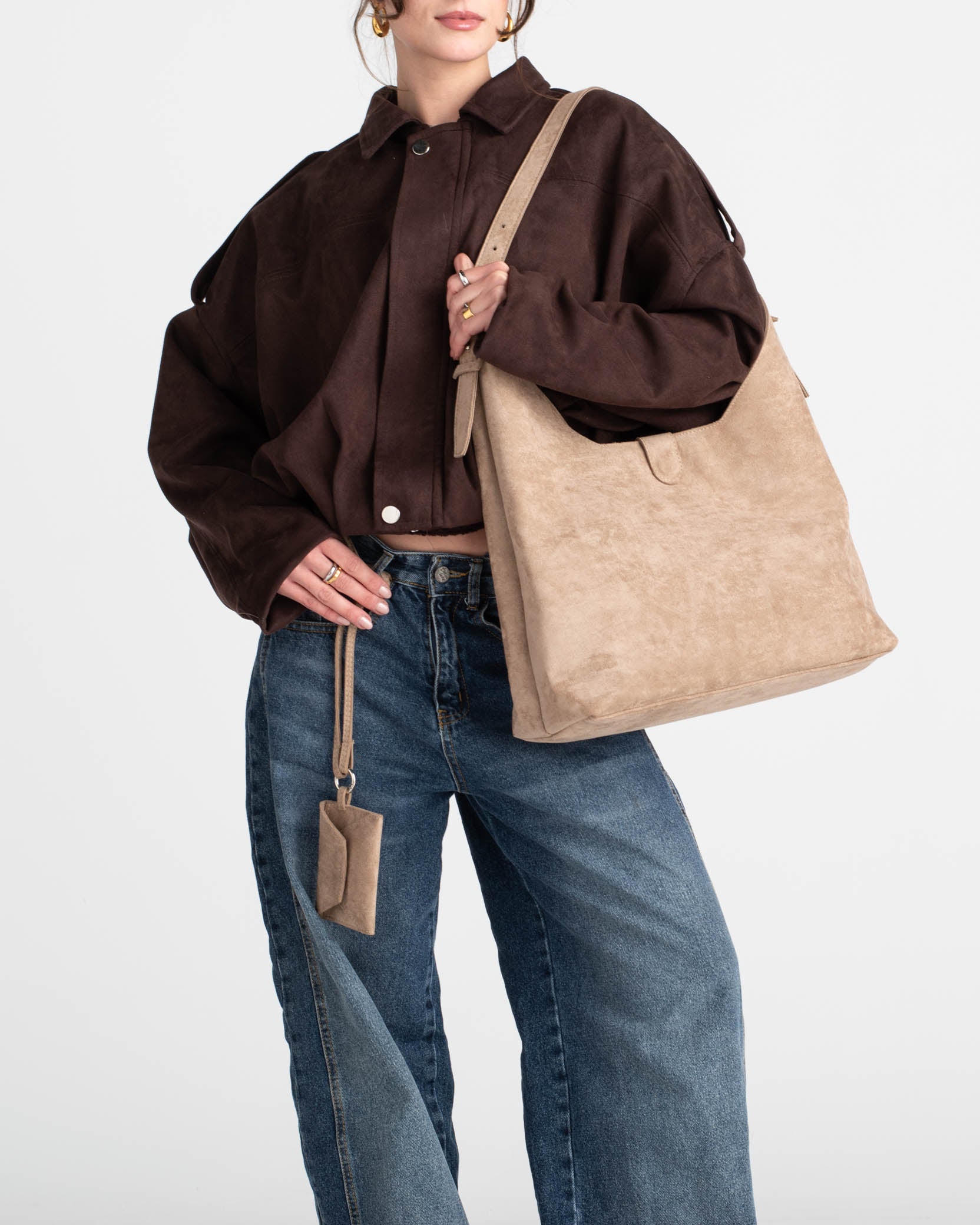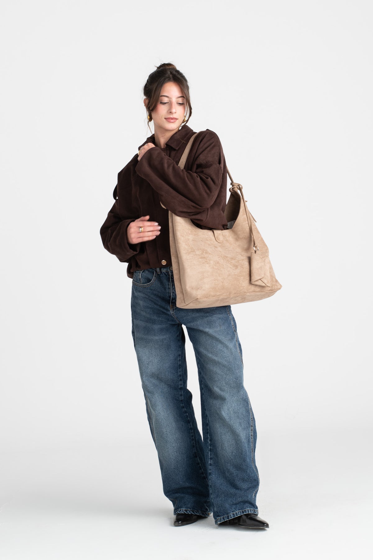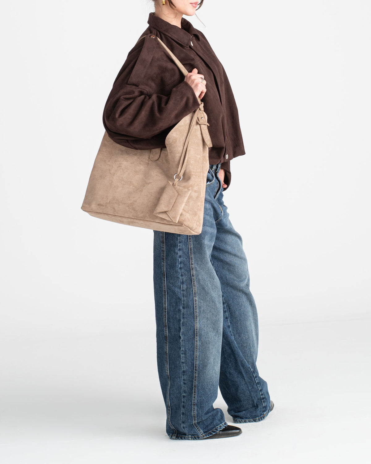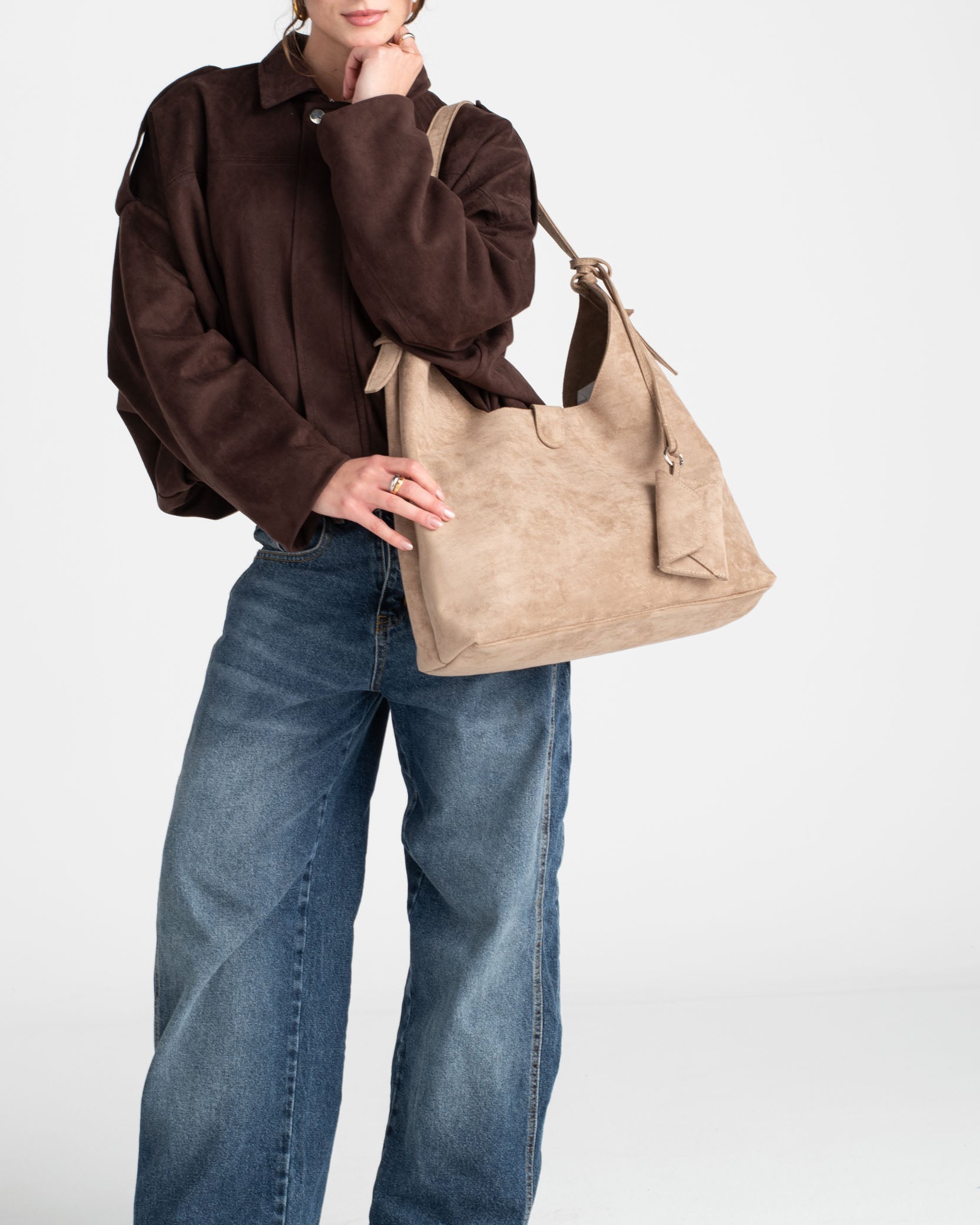 A timeless shoulder bag crafted from premium suede with a soft, structured silhouette. Lightweight yet spacious, it’s designed for everyday use and effortless styling, making it a versatile essential for any wardrobe