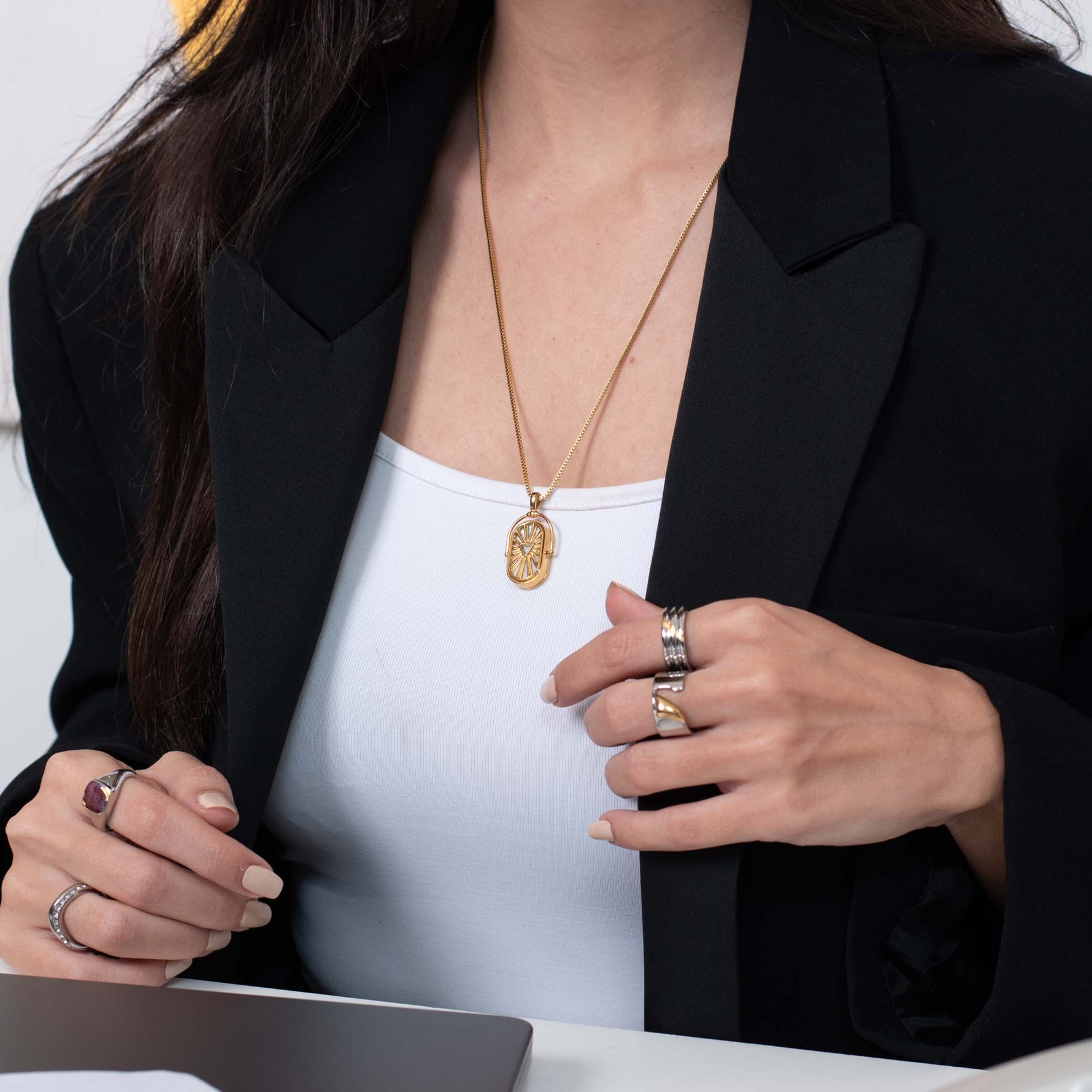 A bold mixed-metal statement in one sleek piece. The Fold Ring features a fluid gold-and-silver design crafted from non-tarnish stainless steel, making it the perfect modern accessory to elevate any work outfit with effortless edge.
